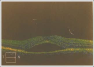 Fig. 4: OCT Macula OD June 2015 (OCT on the day of treatment).